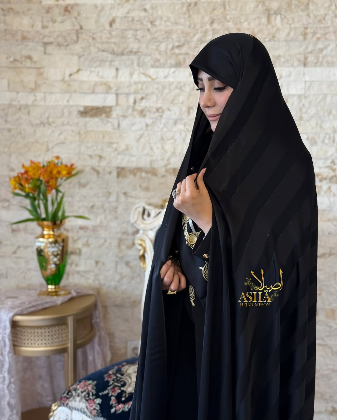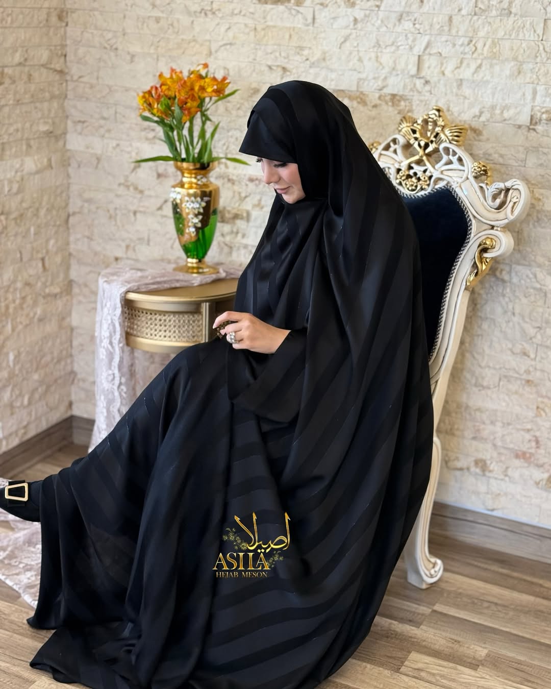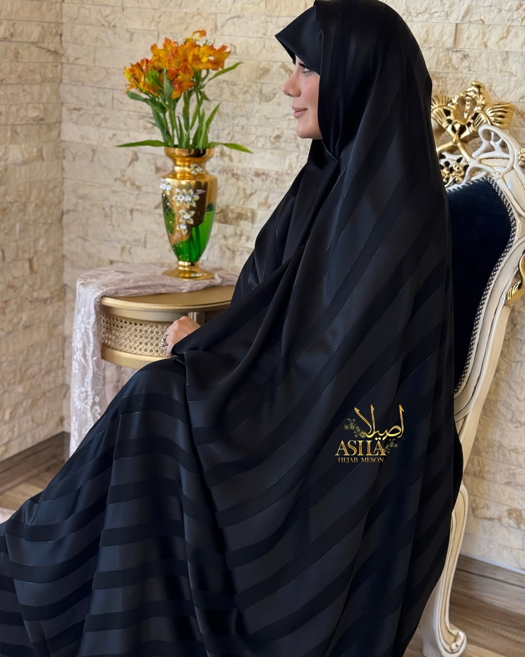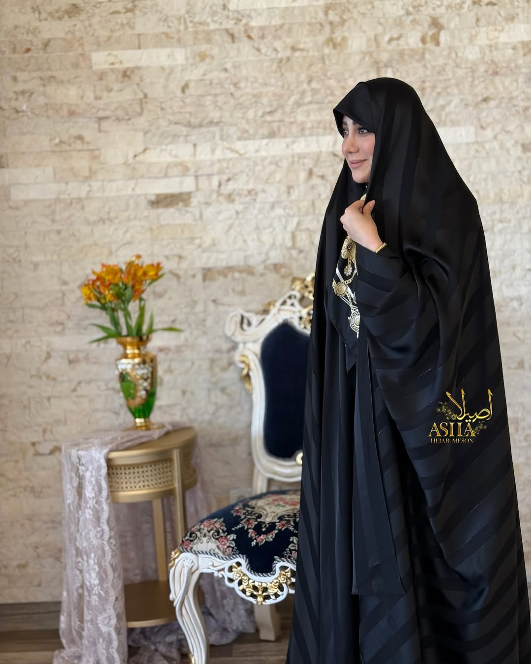 یک چادر خیلی شیک و فاخر ولی اقتصادی که از نظر زیبایی و کیفیت برابری میکنه با چادرهای چند میلیونی. دارای یک خط لمه ظریف در بافت و دو رو است، طرف پشت ساده و بدون خط لمه.