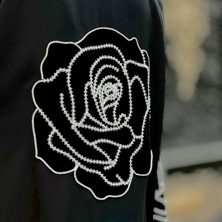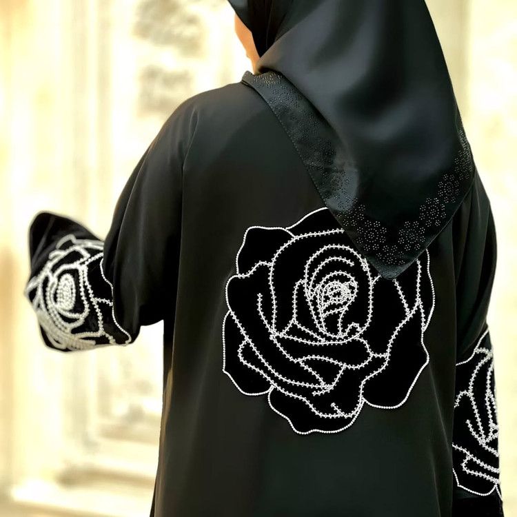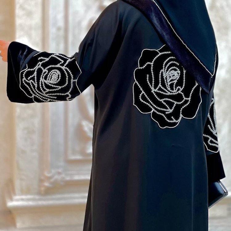 این عبا با کار جواهر در جلو و پشت طراحی شده و از پارچه کرپ ژرژت اصل جرمنی و مخمل درجه یک ونوس تهیه شده است. زیبایی و جلوه فوق العاده بی نظیری دارد.