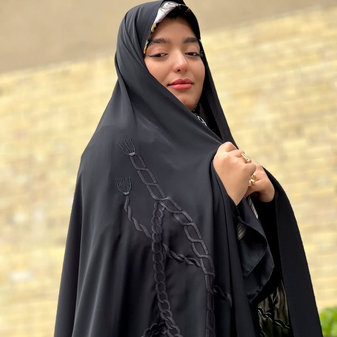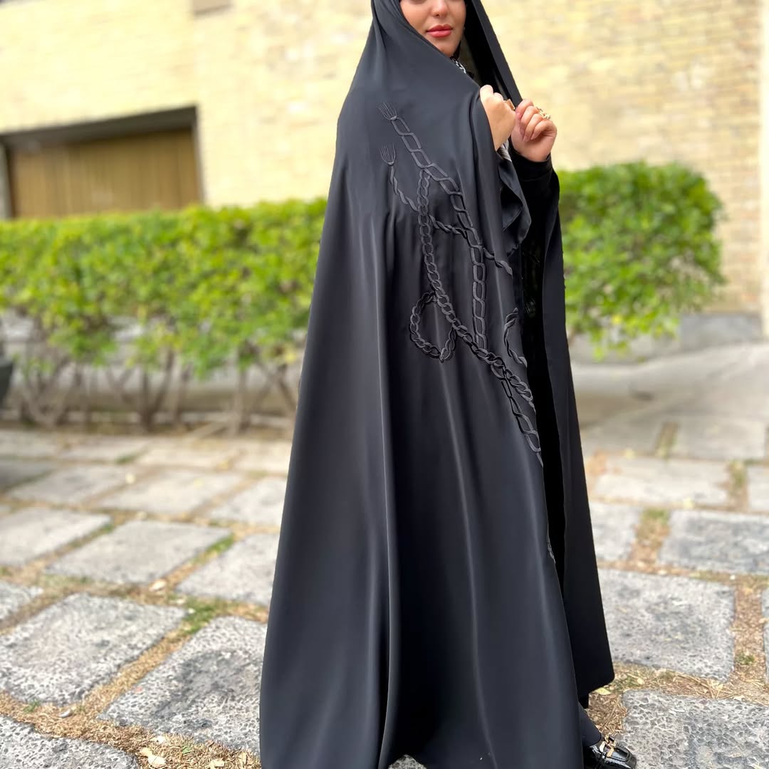 چادر مجلسی گلدوزی با طرح ترند و خیلی شیک. پارچه چادر بی نظیره و ریزش فوق العادهای داره. کاملاً مشکی و یک تیکه بدون برش میباشد. پارچه مطلقاً چروک نداره و جنس پارچه واقعاً معرکه است. گلدوزیها با نخ ابریشم و کاملاً مزونی کار شده.