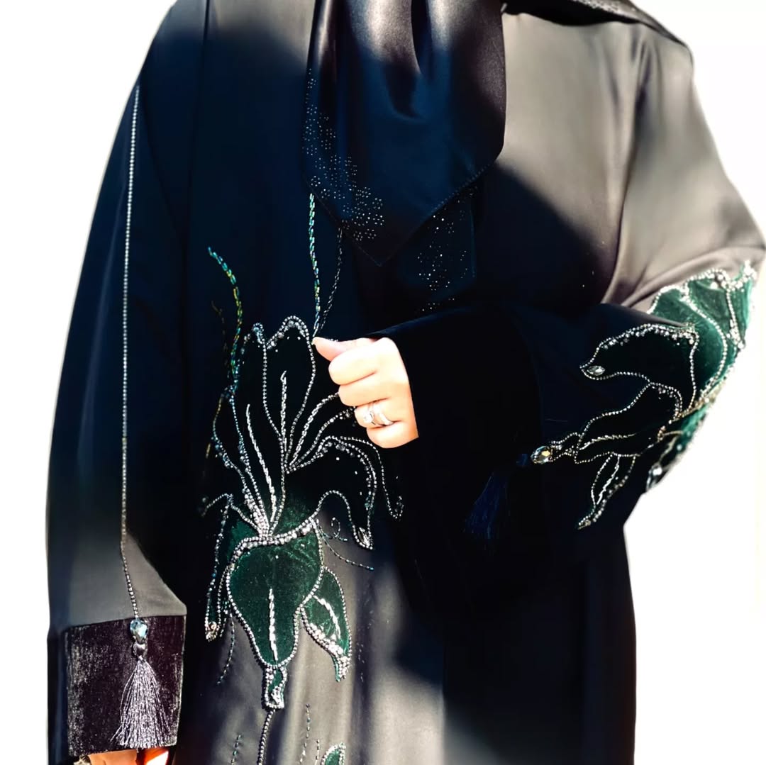 عبای فاخر و مجلسی که برای هر نوع مراسمی انتخاب عالی میتونه باشه. جواهردوزیاش بهترین متریال و بهترین کیفیت دوخت رو داره. جنس پارچه ژرژت اعلا جرمنی که فوق العاده ریزش قشنگی داره کاملا مشکیه. پارچش چروکی و نخ کشی نداره. سرآستین ها مخمل ونوس درجه یک.